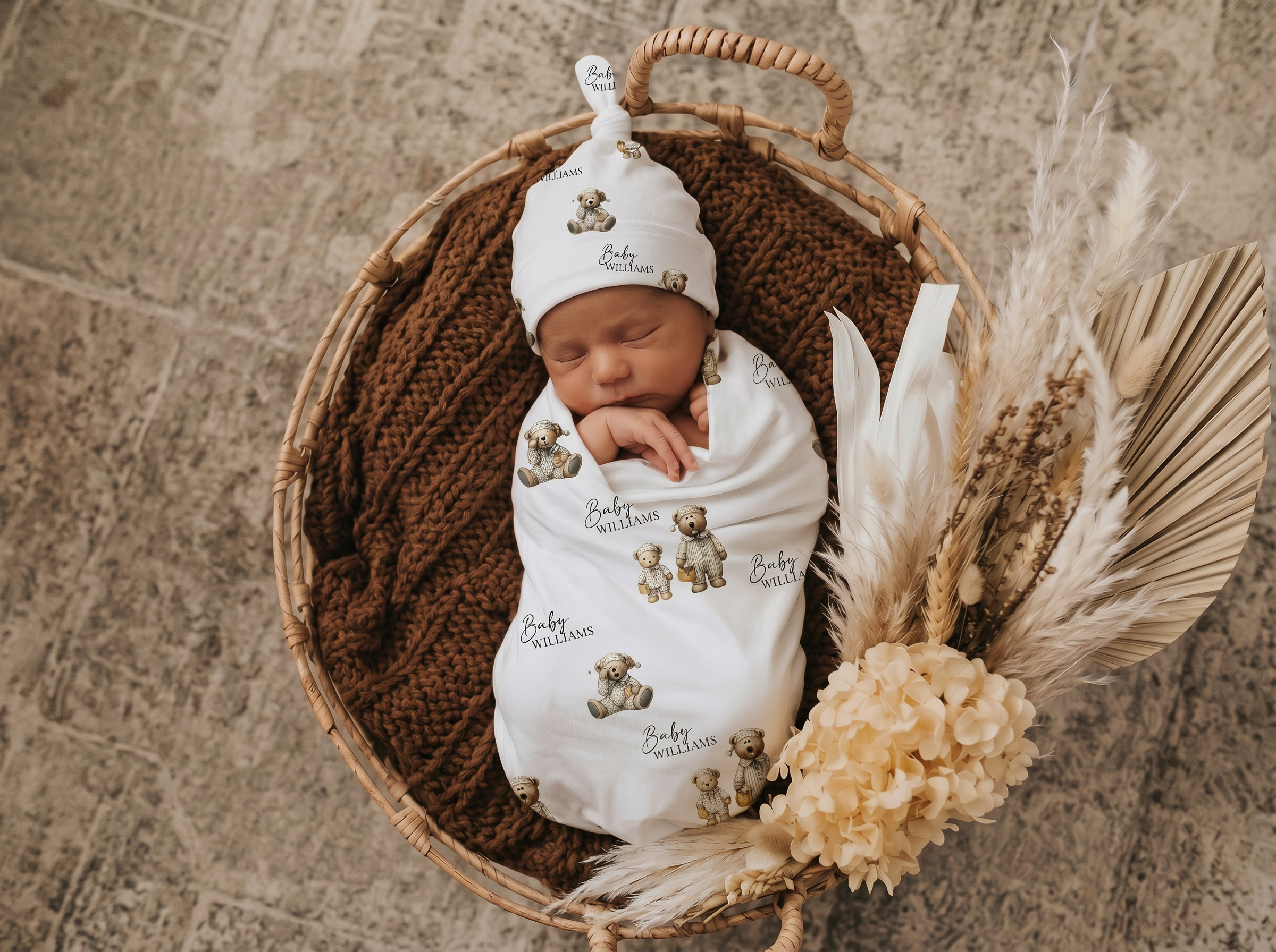 Personalised Swaddle & Beanie Set